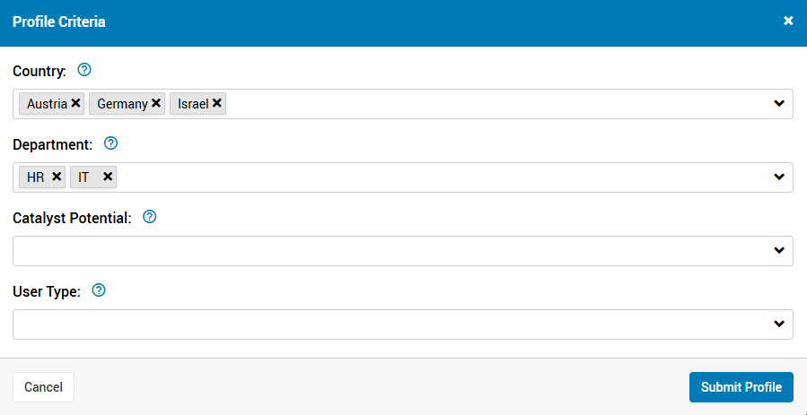 Select Profile Criteria allows you to select groups of users based of criteria within their profile fields.