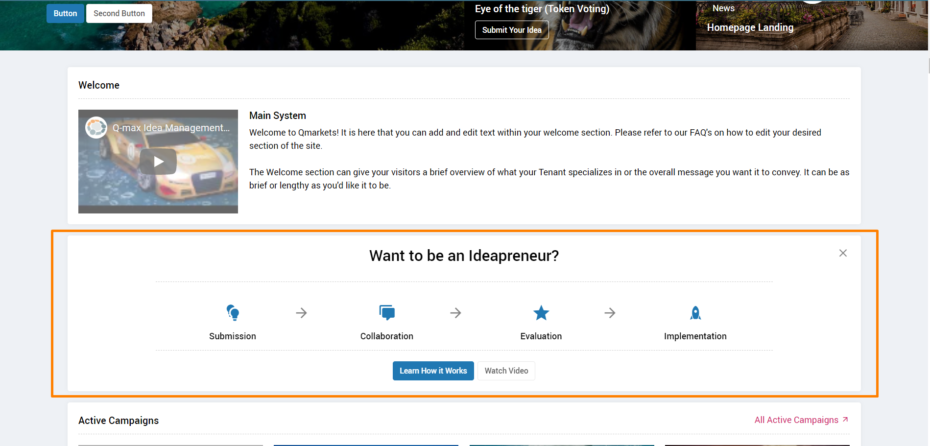 The Introduction Widget is unique in a sense that since it's usually relevant only during the user onboarding in order for him/her to understand the innovation process, and therefore each user can close it and not seeing it unless re-activated by the sysadmin.