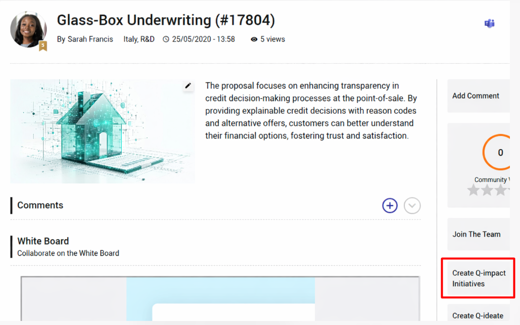 For example, creating a new project from an idea that was approved, or creating a new idea that addresses an existing need or company.