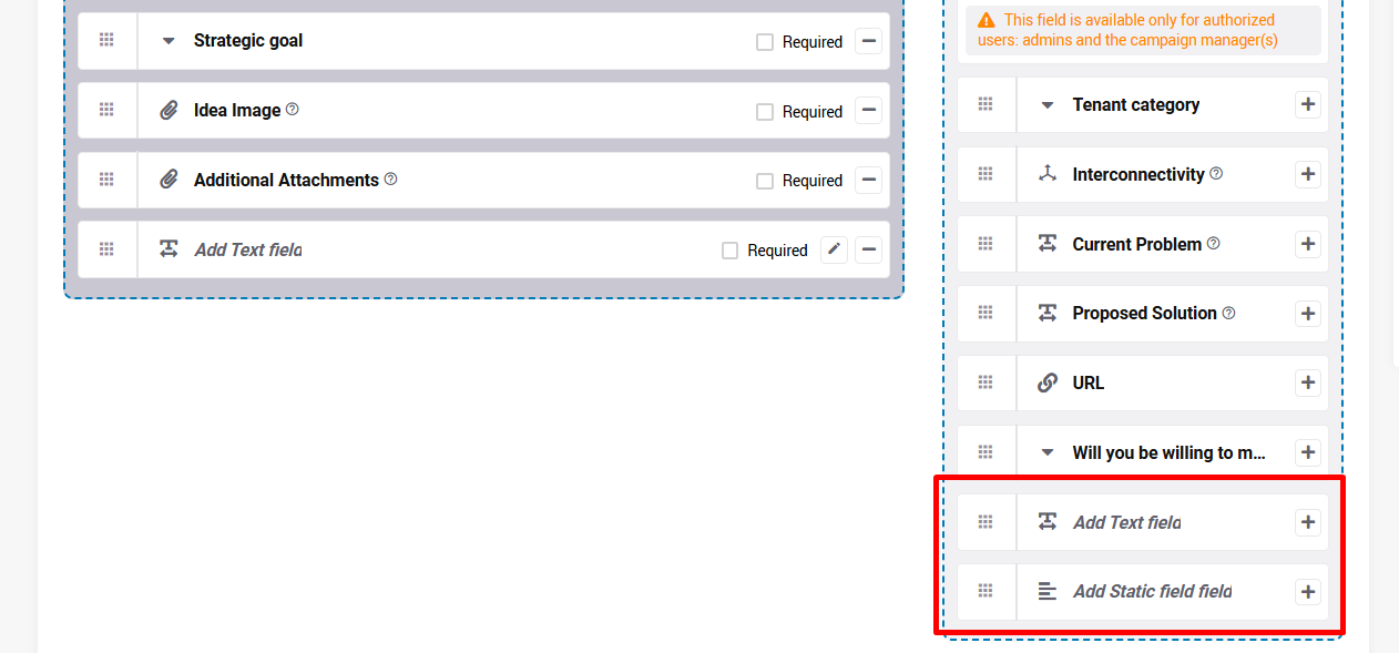 This capability enables System and Subsystem administrators define certain fields as flexible. This is relevant to fields of types such as Text, Number, Date, File, Link, Static and User.
