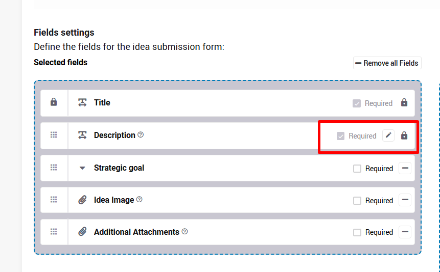 - If you click only the first option, the field will be displayed in his name, and the challenge creator will have the option to edit it. If there are multiple fields, they will be displayed in as separate fields