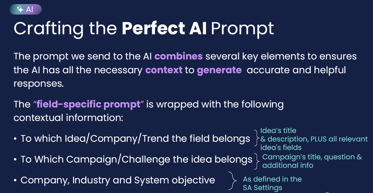 • Enter your company's name and industry. This information will be included in the AI prompts where relevant, increasing the contextuality of the AI results.