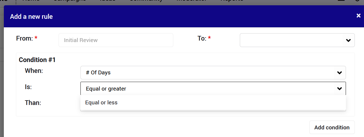 - If case you use the Equal or less when you want to empower the community and reject ideas/projects that haven't received enough feedback.