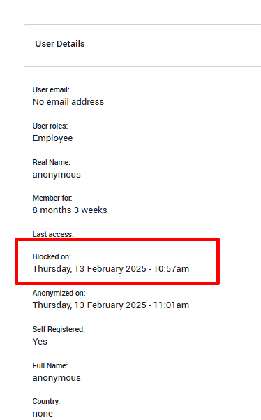 - Note that the last "Blocked on" date will appear on the user's profile page
